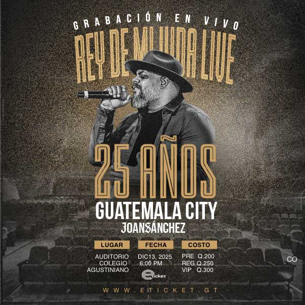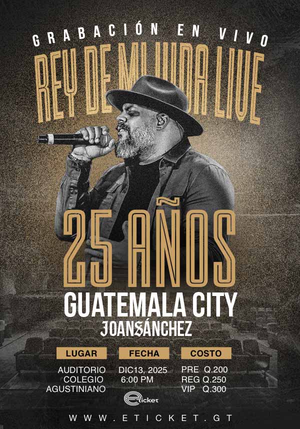 Joan Sanchez presenta “Rey de Mi Vida – Grabación en Vivo”, una noche especial desde Guatemala, celebrando 25 años de ministerio con un concierto católico lleno de adoración, gratitud y fe. Vive esta experiencia única y sé parte de la historia.