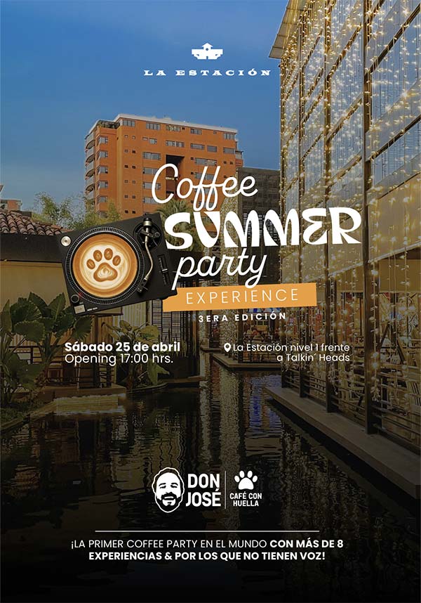 La primera Coffee Summer Party en el mundo que reune más de 8 experiencias por los que no tienen voz junto a café Don Jose. Cada entrada dona 1 semana de comida para los perritos rescatados de la calle.